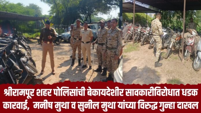 श्रीरामपूर (प्रतिनिधी) – शहरातील बेकायदेशीर सावकारीच्या वाढत्या प्रकारांवर अंकुश ठेवण्यासाठी श्रीरामपूर शहर पोलिसांनी सोमवारी महत्त्वाची कारवाई केली. जुन्या वाहनांच्या बाजारात मोठ्या प्रमाणात उभी असलेल्या चारचाकी व दुचाकी वाहनांची तपासणी करताना पोलिसांना एक गंभीर तक्रार समोर आली.तक्रारदार रोहित संतोष भालेकर (रा. बेलापूर रोड, बजरंगनगर, श्रीरामपूर) यांनी दिनांक 14 नोव्हेंबर रोजी शहर पोलीस ठाण्यात लेखी अर्ज देत मनीष मुथा व सुनील मुथा (दोघेही रा. बेलापूर बु.) यांच्यावर बेकायदेशीर सावकारी केल्याचा आरोप केला होता. भालेकर यांनी कर्जाकरिता आपली मोटरसायकल तारण ठेवली असता दोन्ही आरोपींनी नियमबाह्य पद्धतीने अतिरिक्त व्याज आणि रकमेची मागणी केल्याचा आरोप करण्यात आला.