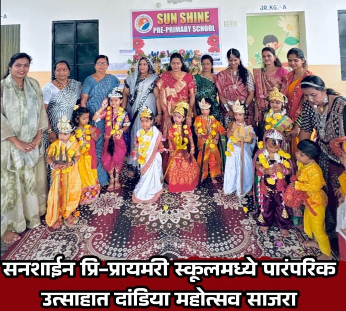 सनशाईन प्रि-प्रायमरी स्कूलमध्ये पारंपरिक उत्साहात दांडिया महोत्सव साजरा