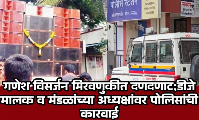 पोलिसांनी केलेल्या तपासणीत शंभूराजे मित्र मंडळ अध्यक्ष उमेश छल्लारे व डीजे चालक अश्पाक मोईनोद्दीन तांबोळी, अष्टविनायक मित्र मंडळ अध्यक्ष जयेश सुरेश झरेकर व “गणेश ०९” डीजे मालक-चालक गणेश गिते, तसेच महाकाल मित्र मंडळ अध्यक्ष सनी गौतम व “सद्गुरु डीजे”चे मालक-चालक निखील विलास बनसोडे हे नियमभंग करताना आढळले. त्यांच्यावर गुन्हे दाखल करण्यात आले असून संबंधित डीजे सिस्टीम जप्त करण्यात आली आहे.