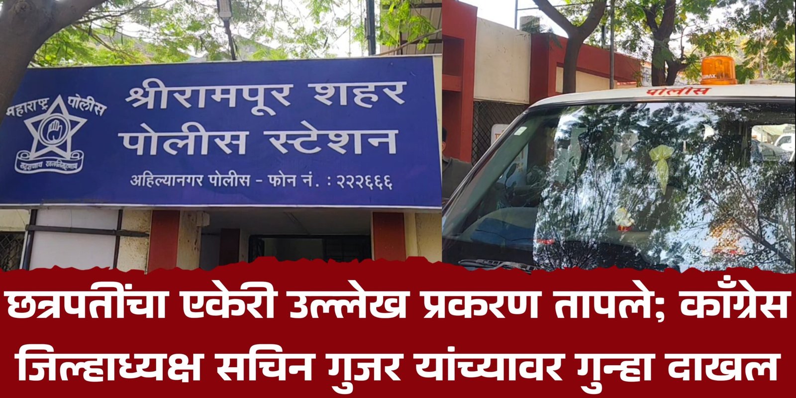 श्रीरामपूर (प्रतिनिधी) – छत्रपती शिवाजी महाराजांचा एकेरी उल्लेख केल्याच्या प्रकरणाने श्रीरामपूर शहराच्या राजकीय वातावरणात जोरदार खळबळ उडाली असून काँग्रेसचे जिल्हाध्यक्ष सचिन गुजर यांच्या विरोधात अखेर गुन्हा दाखल करण्यात आला आहे. भाजप, शिवप्रहार, शिवसेना इत्यादी संघटनांनी या प्रकरणाचा तीव्र विरोध करत कारवाईची मागणी केली होती.मिळालेल्या माहितीनुसार, काँग्रेसचे नगराध्यक्ष पदाचे उमेदवार करण ससाणे यांच्या प्रचारासाठी वार्ड क्रमांक २ मधील सभेत भाषण करताना सचिन गुजर यांनी छत्रपती शिवाजी महाराजांचा एकेरी उल्लेख केल्याचा आरोप आहे. या वक्तव्यामुळे काही नागरिकांमध्ये संतापाची प्रतिक्रिया उमटली होती. शिवप्रहारचे शहराध्यक्ष चंद्रशेखर आगे व त्यांच्या कार्यकर्त्यांनी याला विरोध दर्शवित गुजर यांच्या विरोधात कारवाईची मागणी केली होती.