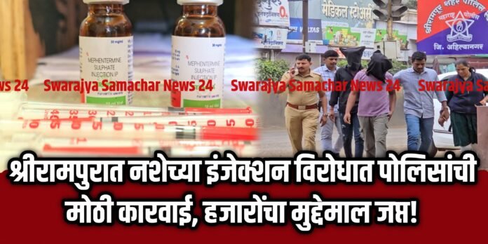 श्रीरामपूर/प्रतिनिधी :- शहराला नशेच्या विळख्यातून बाहेर काढण्यासाठी श्रीरामपूर पोलिसांनी आपली मोहीम तीव्र केली आहे. खबडी परिसरात सापळा रचून केलेल्या एका विशेष कारवाईत पोलिसांनी नशेची इंजेक्शन्स विकणाऱ्या दोन आरोपींना अटक केली आहे. त्यांच्याकडून नशेच्या इंजेक्शन आणि हजारो रुपयांचा मुद्देमाल जप्त करण्यात आला आहे.