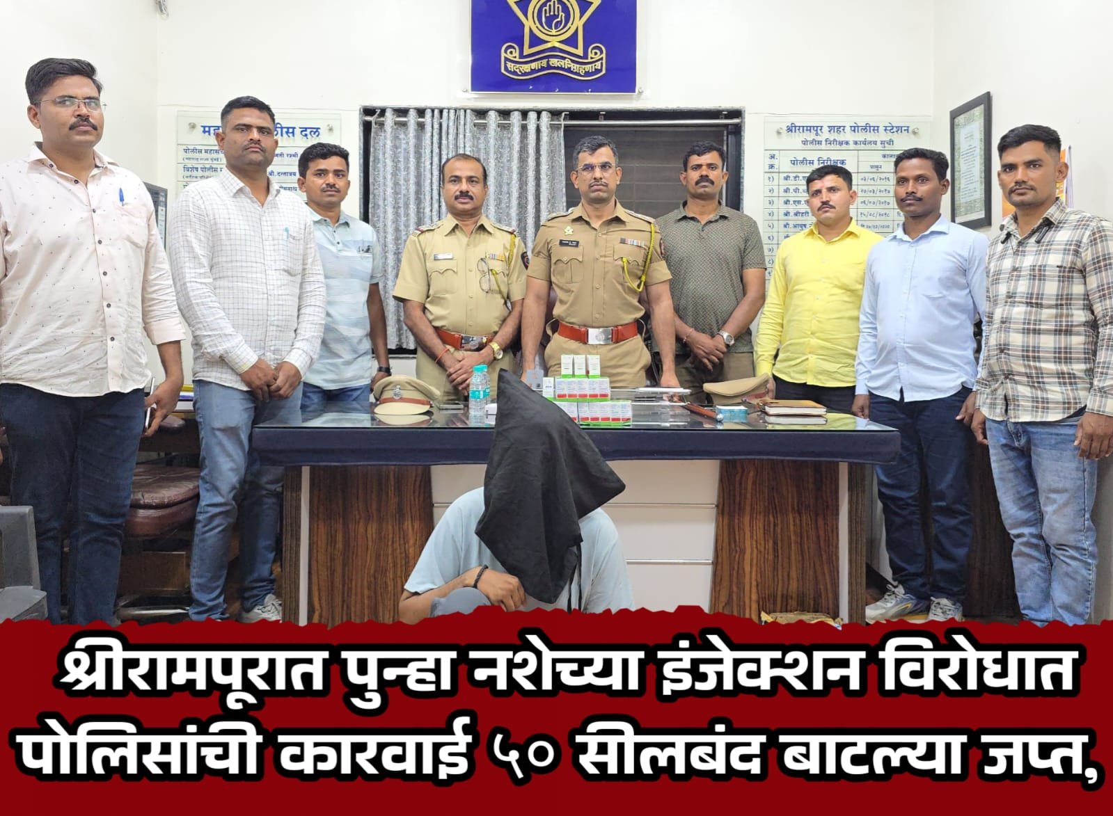 श्रीरामपूरात पुन्हा नशेच्या इंजेक्शन विरोधात पोलिसांची धडक कारवाई, ५० सीलबंद बाटल्या जप्त